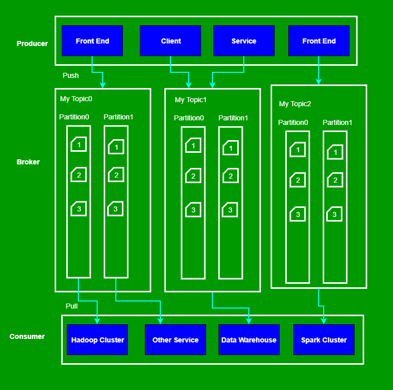 - 支持Kafka Server间消息分区,及分布式消费,同时保证分区内的消息顺序传输